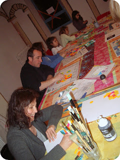 Lorsque le fond est bien coloré, on passe une couche de peinture acrylique noire assez épaisse de façon à bien couvrir les couleurs.